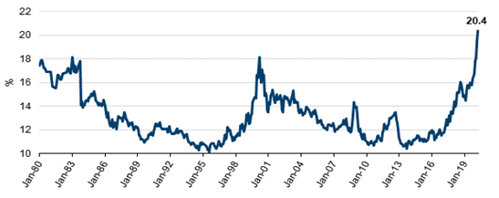 Exhibit 1: Concentration of the largest 5 companies in the S&P 500