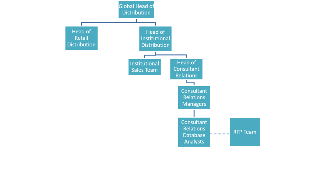A larger team will have a Head of Consultant Relations to co-ordinate the coverage of the consulting firms. This is likely a former CR person themselves and may still retain some of their important consulting relationships. The team would report up into the Institutional Sales/Distribution team [Exhibit 1].